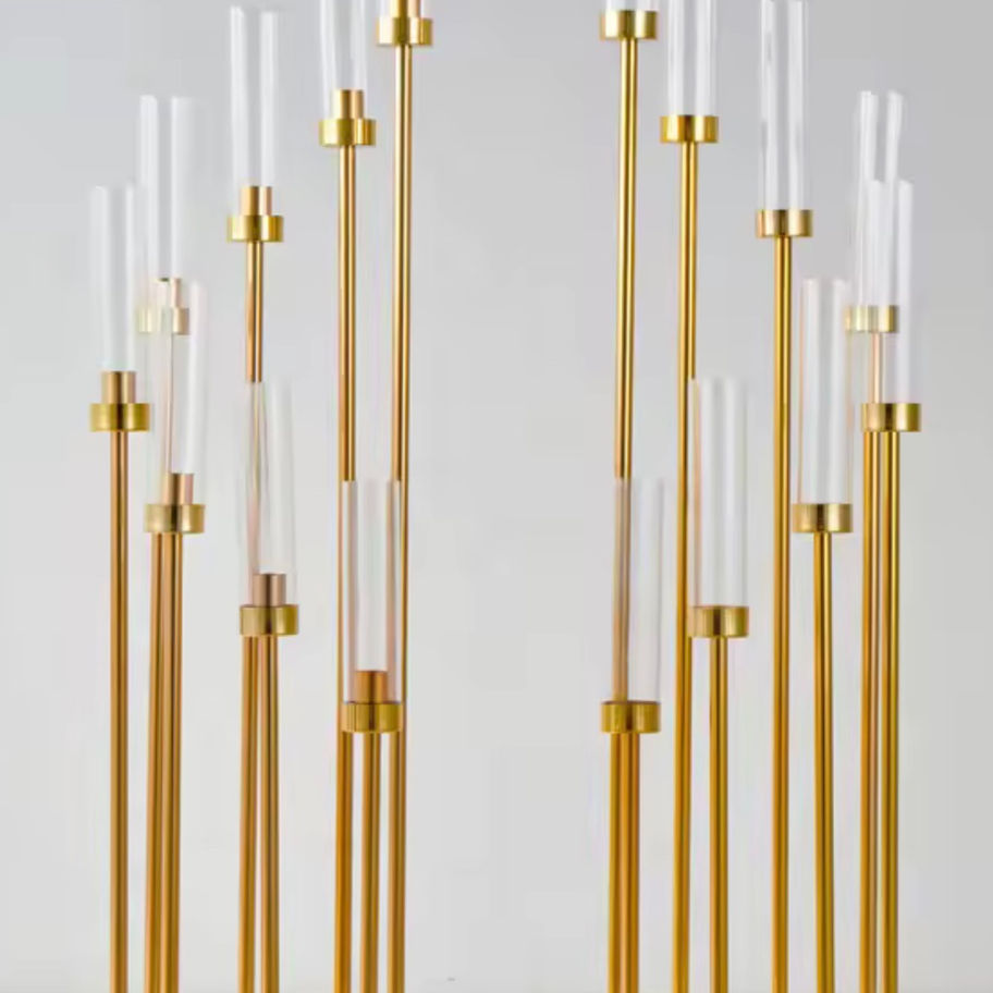 This luxurious centerpiece boasts eight intricately designed arms gold candlestick, perfect for adding a touch of sophistication to weddings, galas, and other unforgettable occasions.